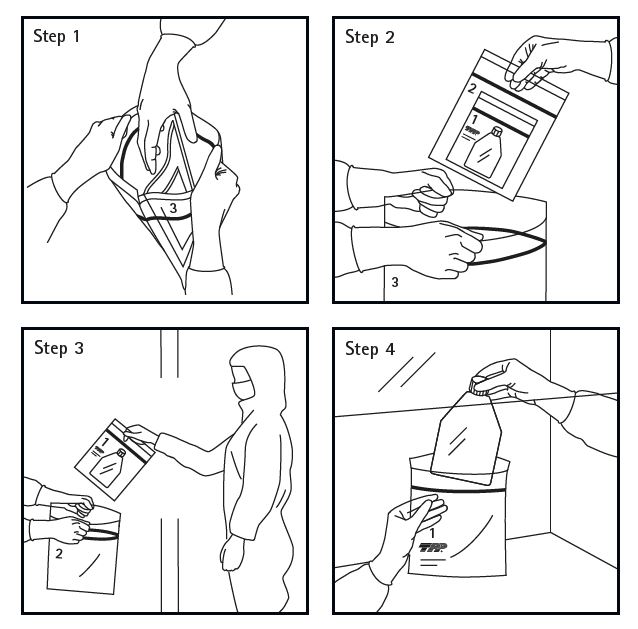 打開袋3,拉出無菌袋2,把袋2拿到傳遞窗口
