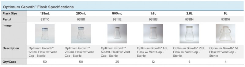 | 931112 | 500ML | Optimum Growth?500mL 燒瓶帶無菌通風(fēng)蓋 | 25 |