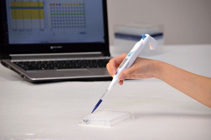 目前全世界所使用的移液器95%都是每次吸入試劑,來回進行移動的手動類型移液器。使用這類傳統(tǒng)的手動移液器,需要熟練的操作,而且由于長時間的作業(yè),研究人員中有不少還患上了腱鞘炎。
