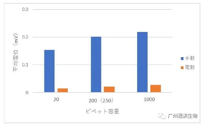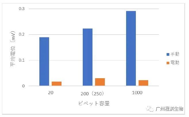 對(duì)于電動(dòng)移液器和手動(dòng)移液器,測(cè)量操作過(guò)程中的電位變化。每種條件下測(cè)量10次,n=4(2男2女),計(jì)算平均值。