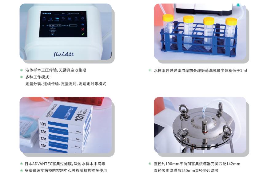 BDFJ-01水樣病毒富集系統(tǒng)專門針對醫(yī)療污水、生活飲用水、環(huán)境水中病毒的富集濃縮,是疾病預(yù)防控制中心、環(huán)境檢測部門、醫(yī)療單位、海關(guān)、大學(xué)研究所等部門用于水中病毒樣本檢測前處理的優(yōu)選工具。