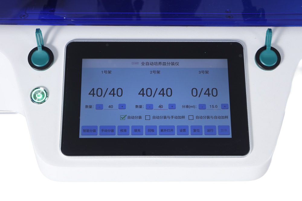 智能分裝功能具有缺培養(yǎng)皿檢測功能,即儀器自動檢測到堆疊架上無培養(yǎng)皿,儀器會自動停機。
