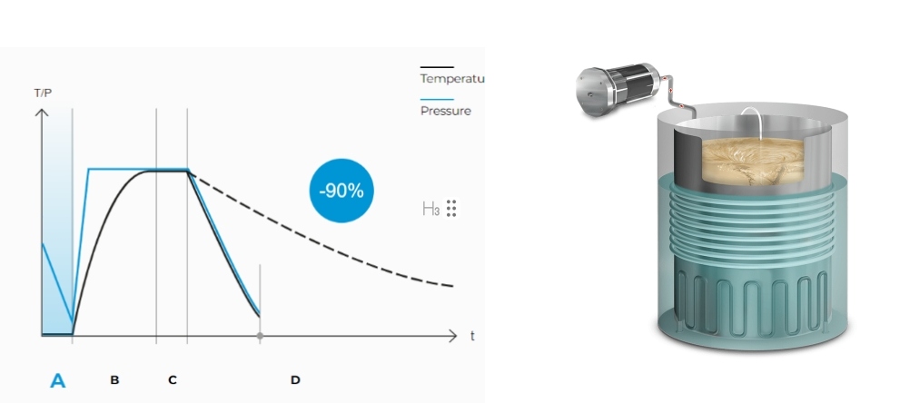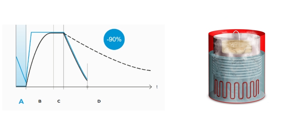 在這一階段,腔體內(nèi)的冷空氣通過(guò)真空脈沖被機(jī)械地排出到外部,減少不可冷凝氣體的殘留,從而加速培養(yǎng)基的加熱過(guò)程。
