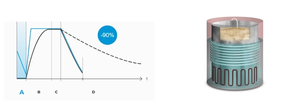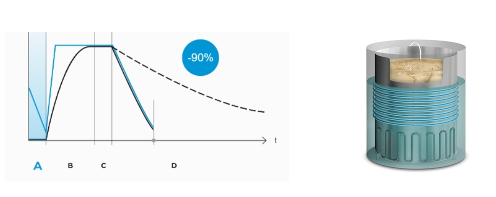 由于通過(guò)壓力支持進(jìn)行分配,因此可以高速分配大體積。此外,容積更大的型號(hào)可以更大功率加熱,加上快速冷卻,可以大大減少每個(gè)循環(huán)的持續(xù)時(shí)間。